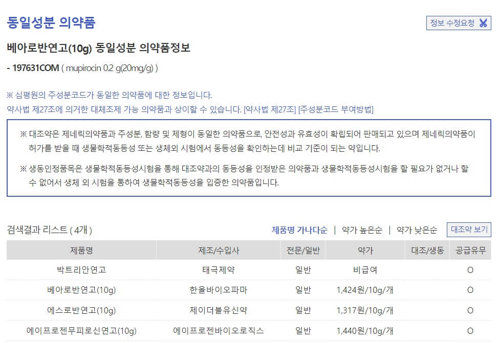 무피로신 성분을 함유 하고 있는 제품으로는 베아로반, 에스로반, 박트리안 연고 등이 있다.